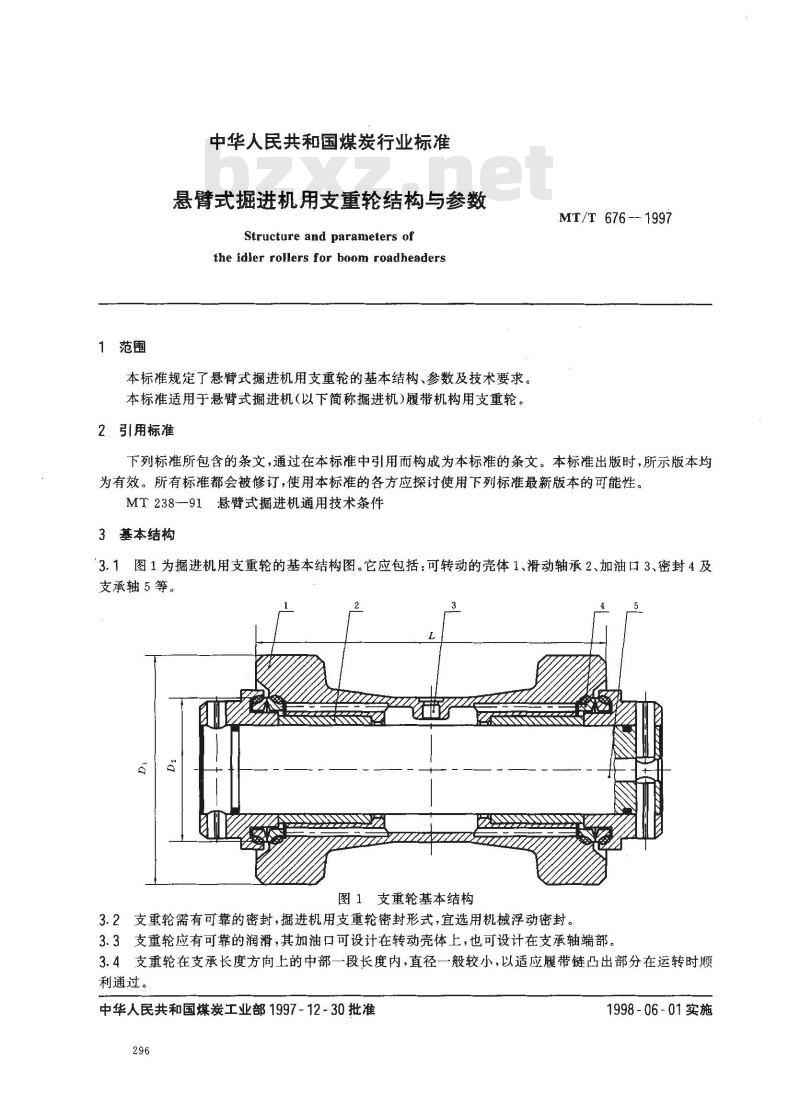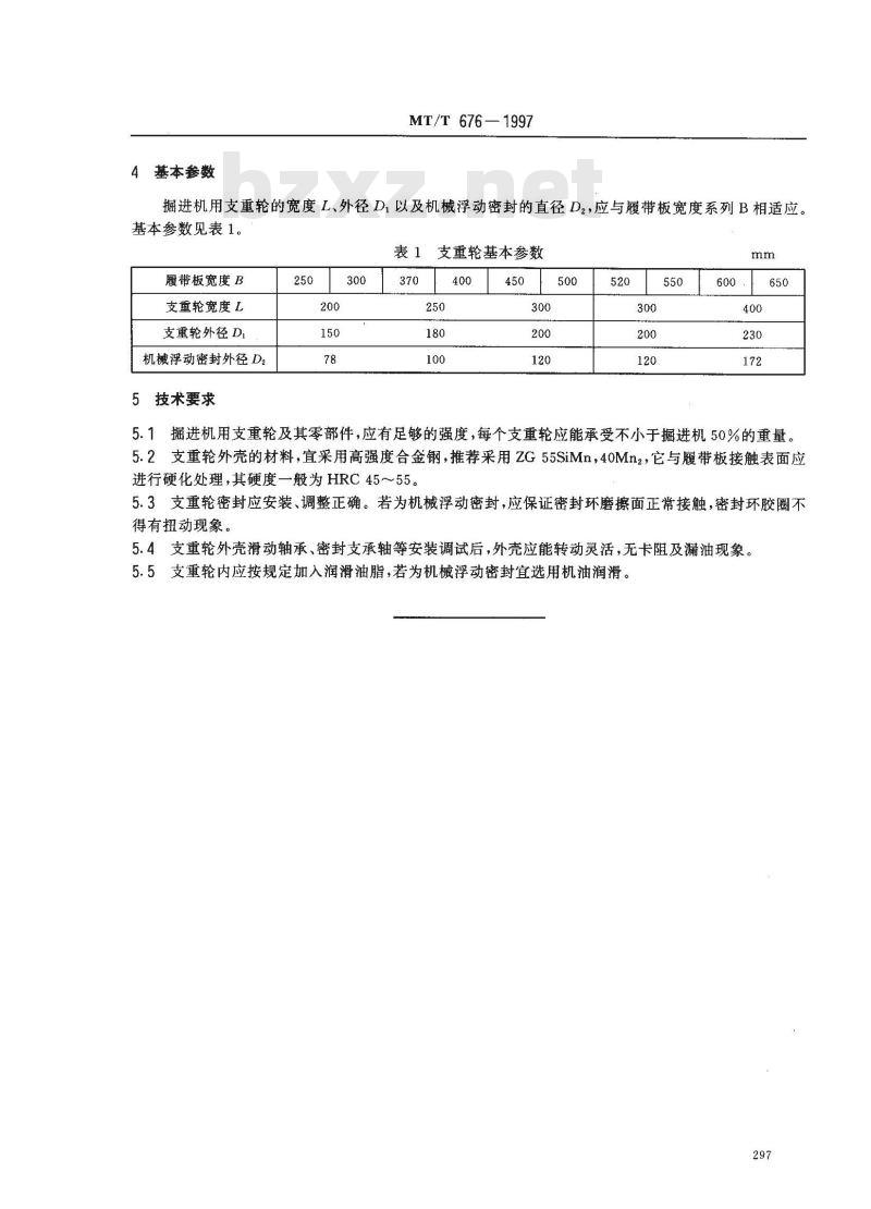 - MT/T 676-1997 悬臂式掘进机用支重轮结构与参数
