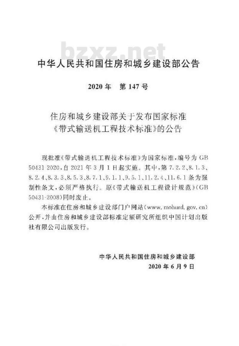 住房和城乡建设部关于发布国家标准《带式输送机工程技术标准》的公告现批准《带式输送机工程技术标准》为国家标准,编号为GB504312020,自2021年3月1日起实施,其中.第7.2.2、8.1.38.2.4、8.3.3、8.5.3、8.7.1、9.1、1、9.5.1、11.2.4、11.6.1条为强制性条文,必须严格执行。原带式输送机工程设计规范》(GB50431-2008)同时废止。