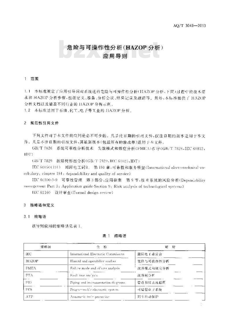 1.2AQ/T 3049适用于石油、化工、电子等工业的HAZOP分析。