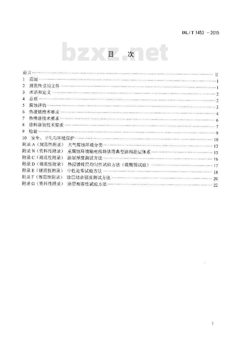 DL/T 1453规定了输电线路铁塔(简称“铁塔”)的腐蚀评估要求,以及防腐蚀保护涂装的技术要求,检验要求,试验方法,安全、卫生和环境保护要求。