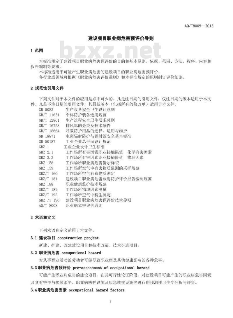 - AQ/T 8009-2013 建设项目职业病危害预评价导则