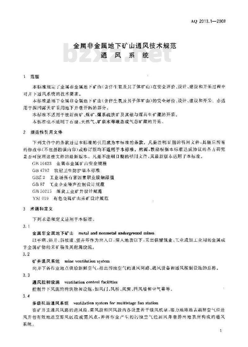 - AQ 2013.1-2008 金属非金属地下矿山通风技术规范通风系统