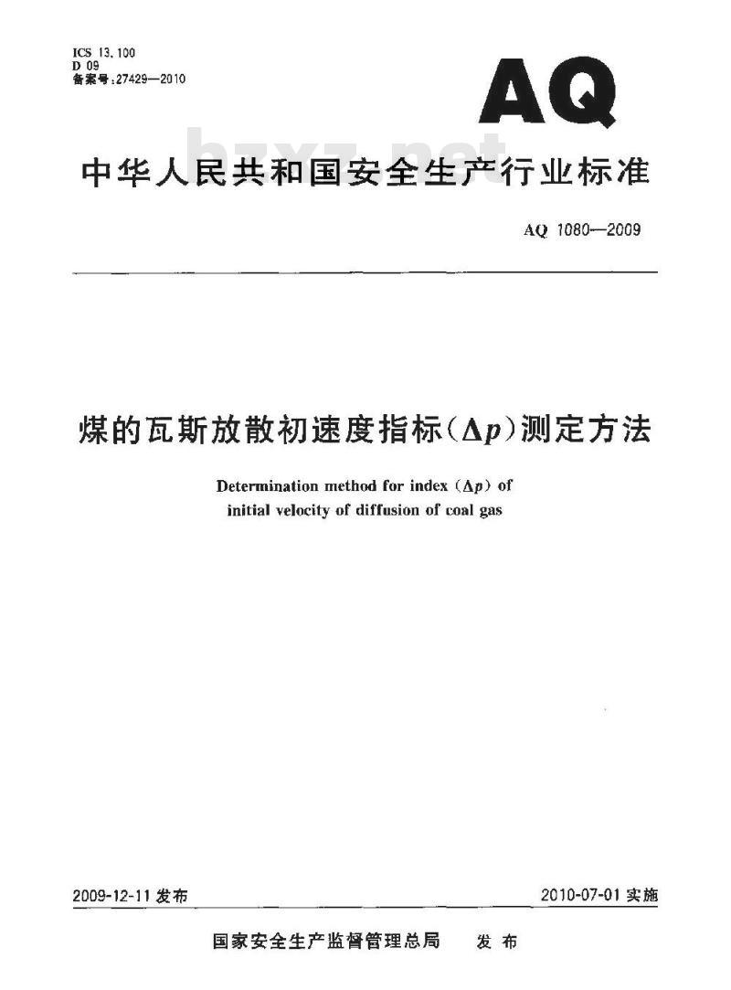煤的瓦斯放散初速度指标(4p)测定方法AQ1080—2009