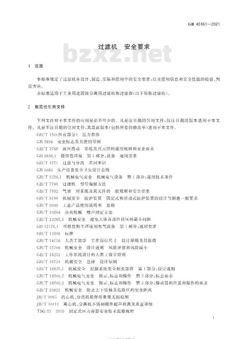 - GB 40161-2021 过滤机 安全要求