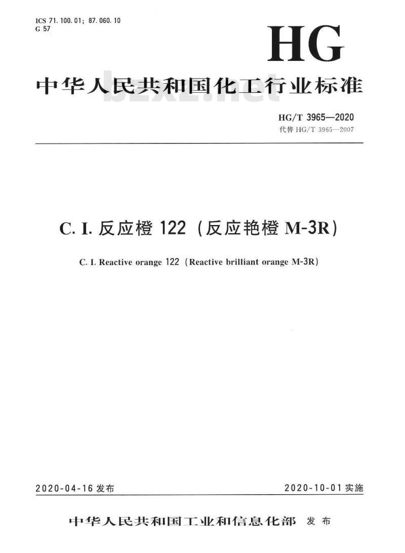 - HG/T 3965-2020 代替HG/T 3965-2007 C.I.反应橙122(反应艳橙M-3R)