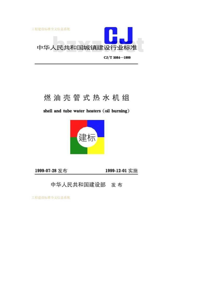 - CJ/T 3084-1999 燃油壳管式热水机组