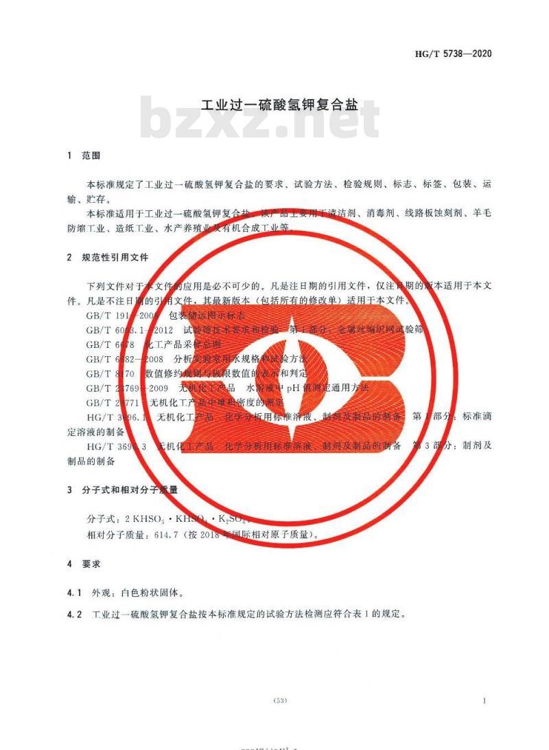 - HG/T 5738-2020 工业过一硫酸氢钾复合盐