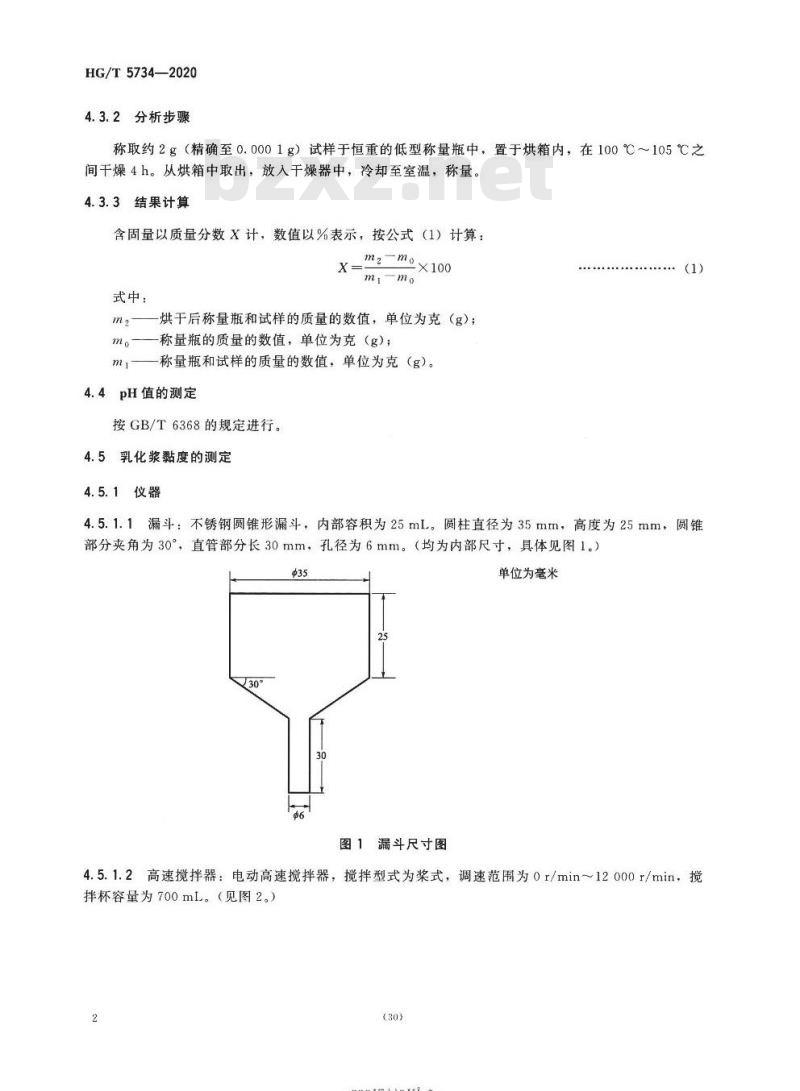 含固量以质量分数X计,数值以%表示,按公式(1)计算:mz-mo×100