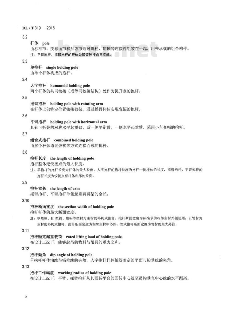 - DL/T 319-2018 架空输电线路施工抱杆通用技术条件及试验方法