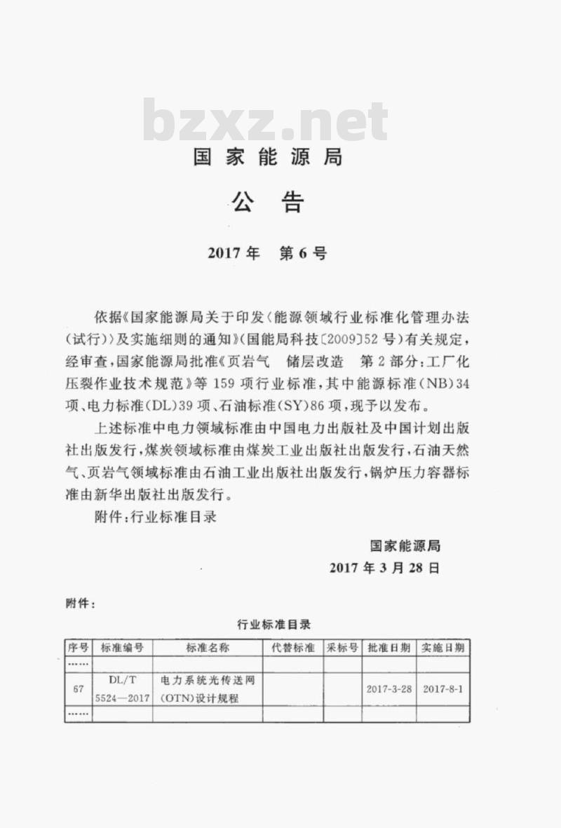 - DL/T 5524-2017 电力系统光传送网(OTN) 设计规程
