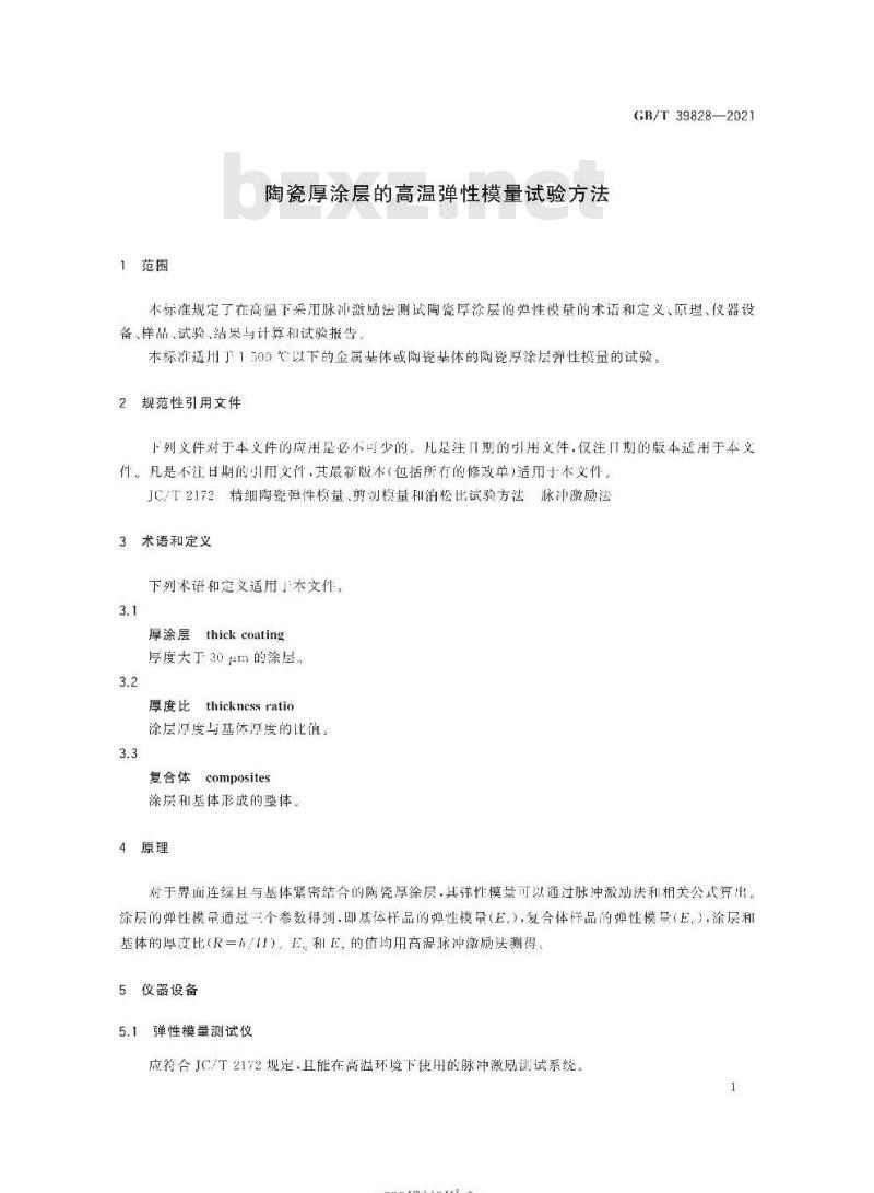 - GB/T 39828-2021 陶瓷厚涂层的高温弹性模量试验方法