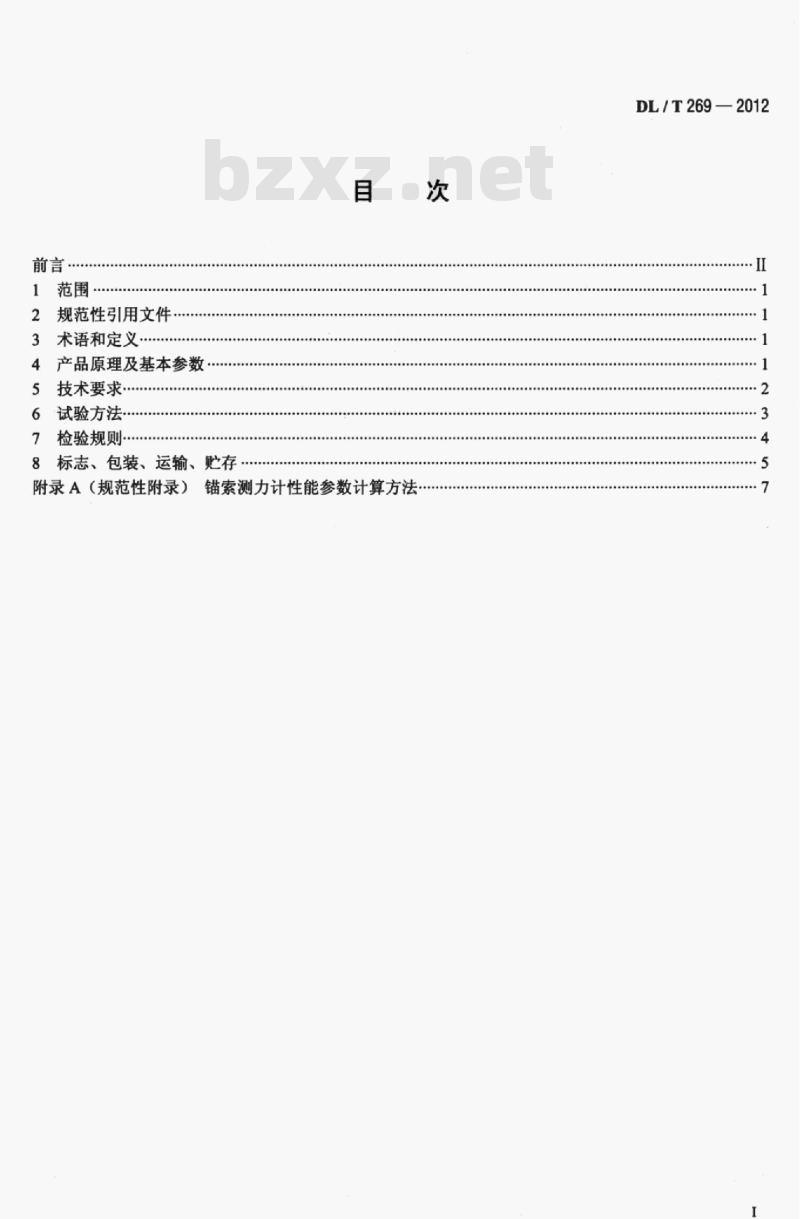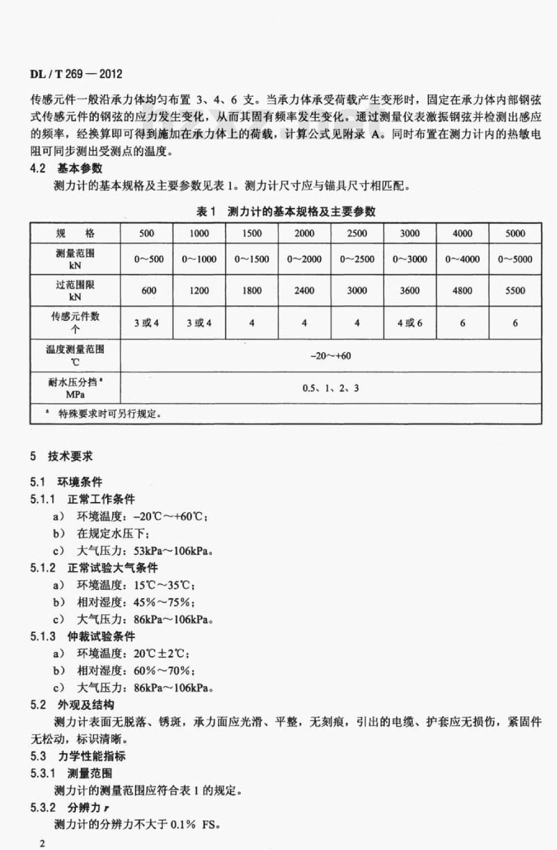DL/T 269规定了钢弦式锚索测力计的基本参数、技术要求、试验方法、检验规则和标志、包装、运输、贮存的要求。
