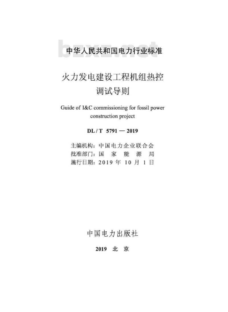 - DL/T 5791-2019 火力发电建设工程机组热控调试导则