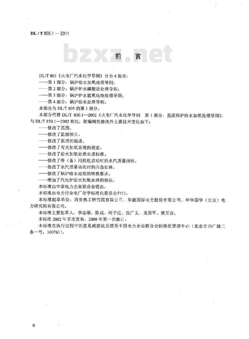 - DL/T 805.1-2011 火电厂汽水化学导则 第1部分:锅炉给水加氧处理导则