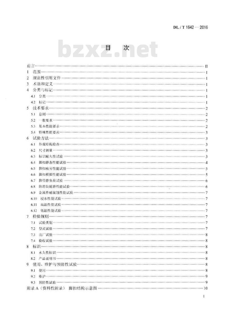 DL/T 1642规定了环形混凝土电杆用脚扣( 简称脚扣)的分类与标记,技术要求,试验方法,检验规则,标识,使用、维护与预防性试验等。
