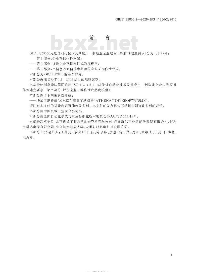 第2部分:评价企业五操作性成熟度模型:一第3部分:由信息和通信技术驱动的企业互操作性要求本部分为(G[3/T32855的第2部分本部分按照GB/T1.12009给出的规则起草。本部分使用翻译法等同采用IS0)11354-2:2015《先迹白动化技术及其应用作性建立要求第2部分:评价企业五操作性成熟度模型》本部分做厂下列编辑性修改: