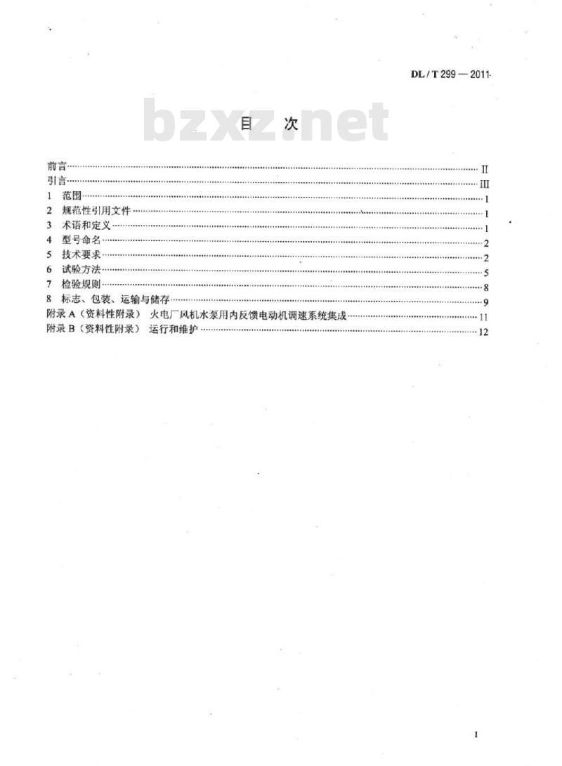 DL/T 299适用于内反馈电动机的额定输入电压为3kV~ l0kV,功率为200kW~ 4000kW的火电厂风机、水泵类负载的内反馈电动机调速装置的订货、验收、监造及运行维护。