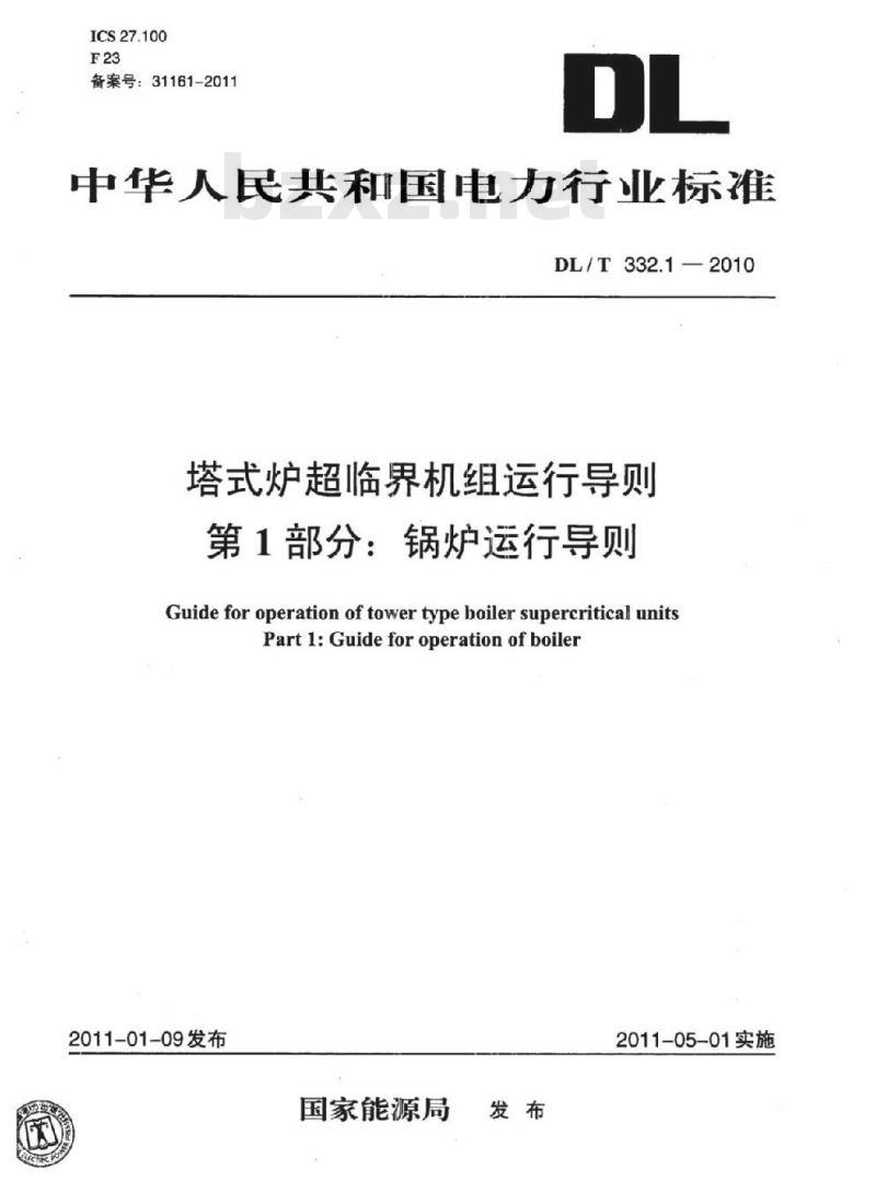 - DL/T 332.1-2010 塔式炉超临界机组运行导则 第1部分:锅炉运行导则