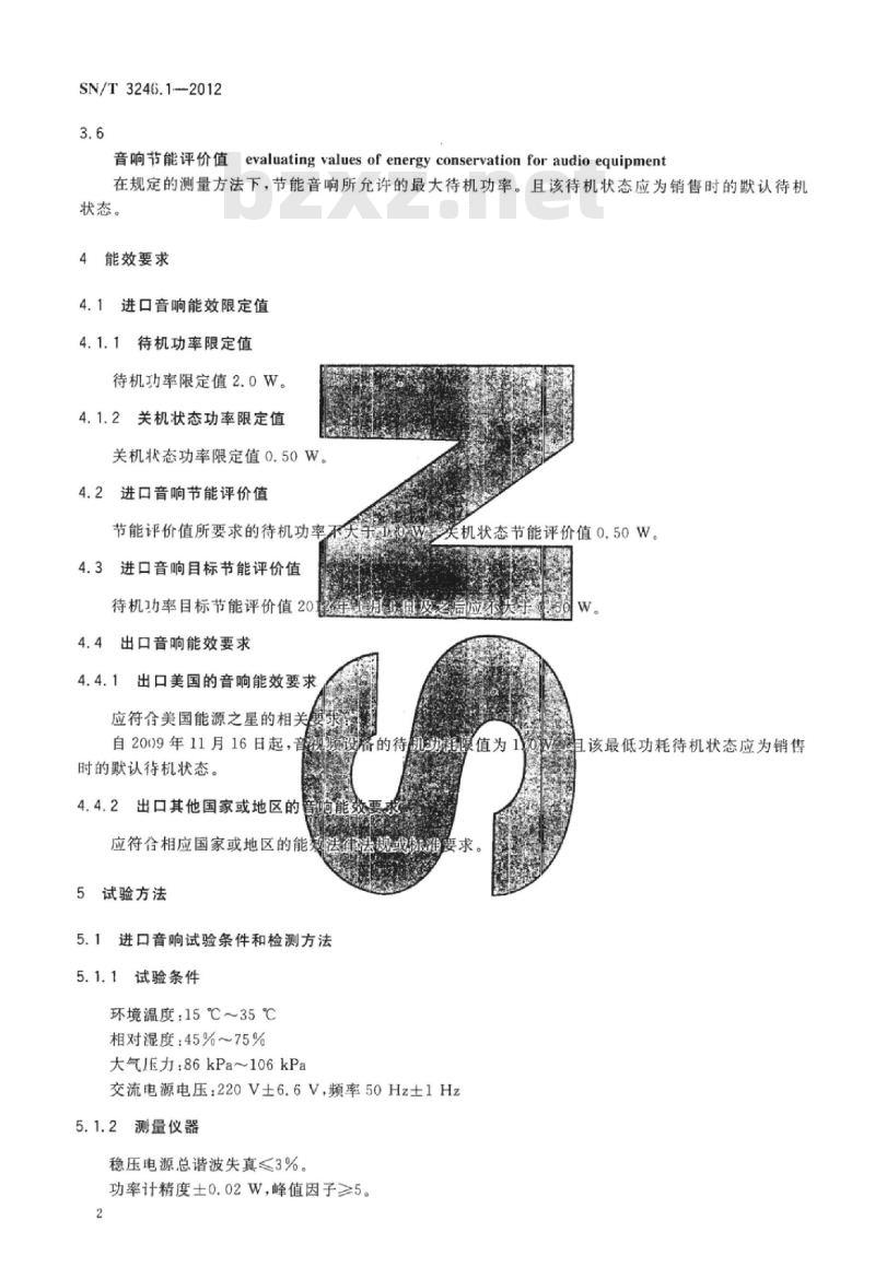 SN/T 3246.1规定了进出口音视频产品中音响的能效要求、试验方法及结果判定。