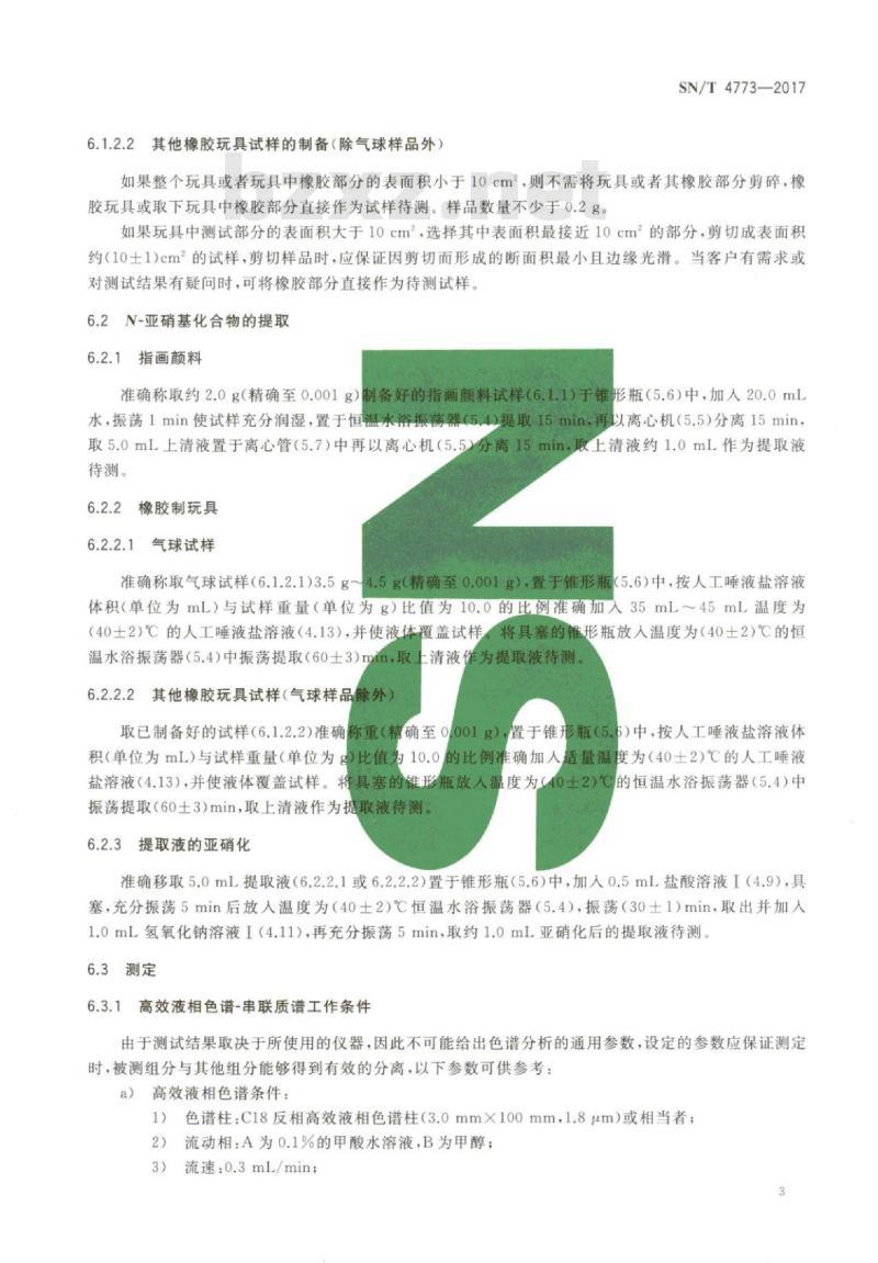 SN/T 4773规定了玩具材料中N-亚硝胺和N-亚硝基化合物迁移量的高效液相色谱-串联质谱测定方法。