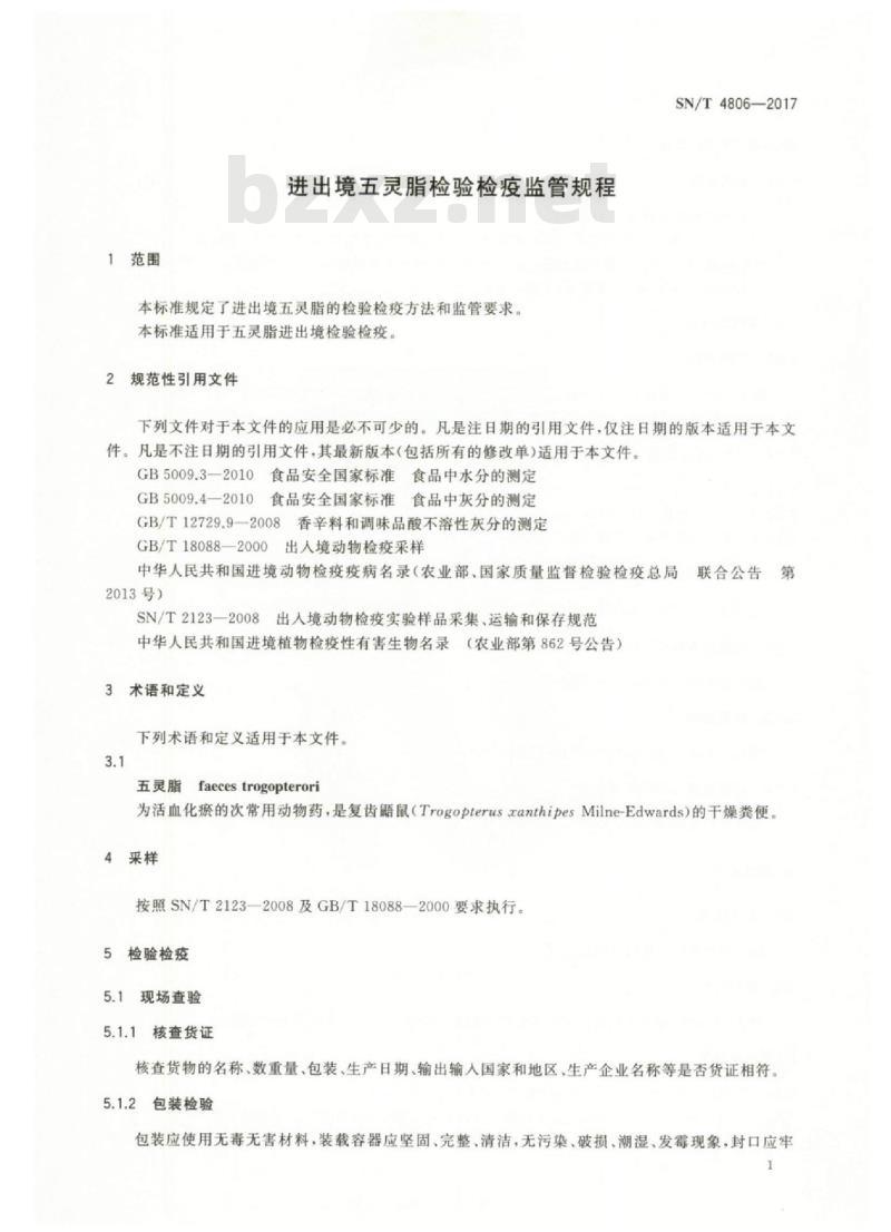 SN/T 4806适用于五灵脂进出境检验检疫。
