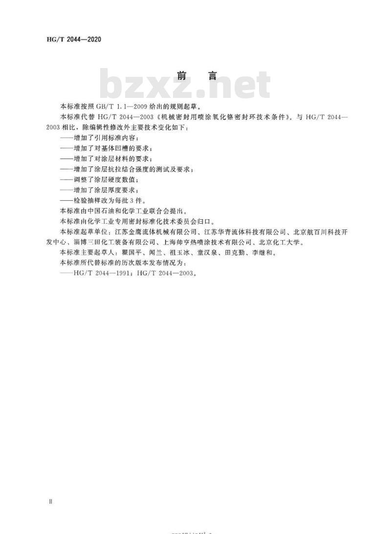 本标准由中国石油和化学工业联合会提出。本标准由化学工业专用密封标准化技术委员会归口。本标准起草单位:江苏金鹰流体机械有限公司、江苏华青流体科技有限公司、北京航百川科技开发中心、淄博三田化工装备有限公司、上海帅亨热喷涂技术有限公司、北京化工大学。本标准主要起草人:翟国平、闻兰、祖玉冰、童汉泉、田克勤、李继和。本标准所代替标准的历次版本发布情况为:HG/T2044—1991;HG/T2044—2003。Ⅱ