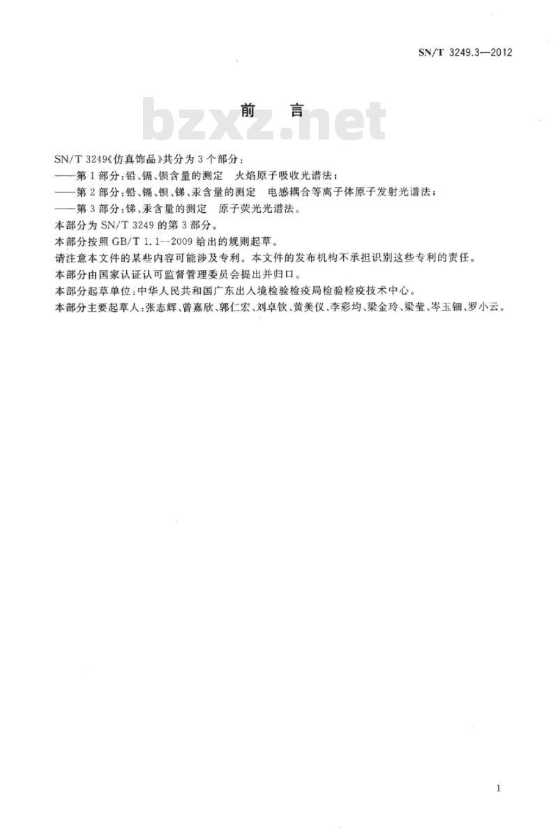 SN/T3249《仿真饰品》共分为3个部分:第1部分:铅、、锁含量的测定火焰原子吸收光谱法;SN/T3249.3--2012