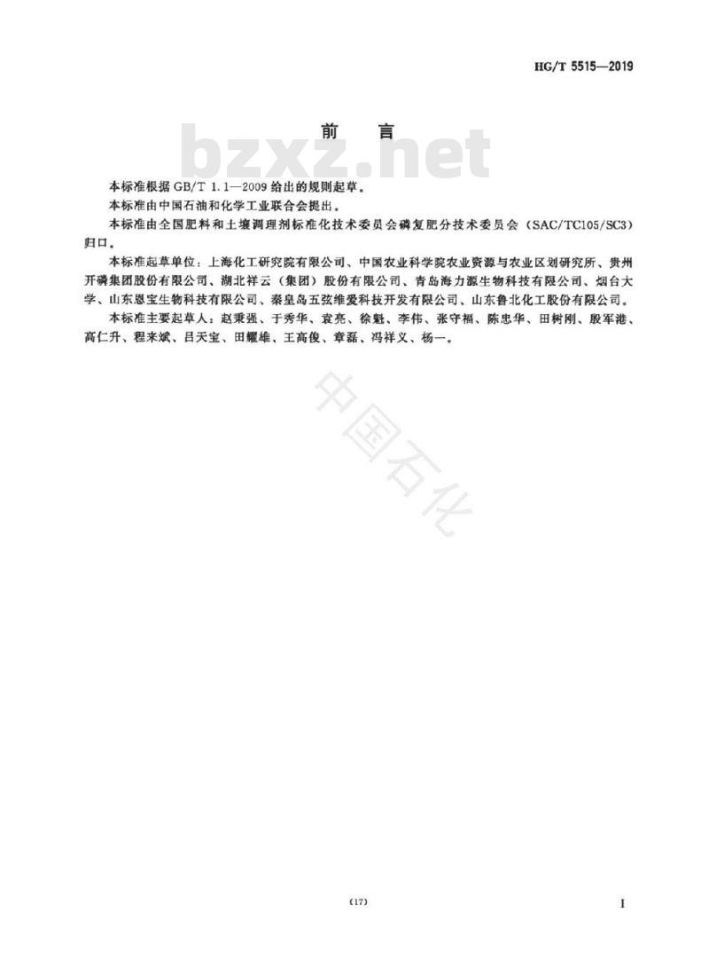 本标准起草单位:上海化工研究院有限公司、中国农业科学院农业资源与农业区划研究所、贵州开磷集团股份有限公司、湖北祥云(集团)股份有限公司、青岛海力源生物科技有限公司、烟台大学、山东恩宝生物科技有限公司、秦皇岛五弦维爱科技开发有限公司、山东鲁北化工股份有限公司。本标准主要起草人:赵秉强、于秀华、袁亮、徐魁、李伟、张守福、陈忠华、田树刚、殷军港、高仁升、程来斌、吕天宝、田耀雄、王高俊、章磊、冯祥义、杨一。中国石化