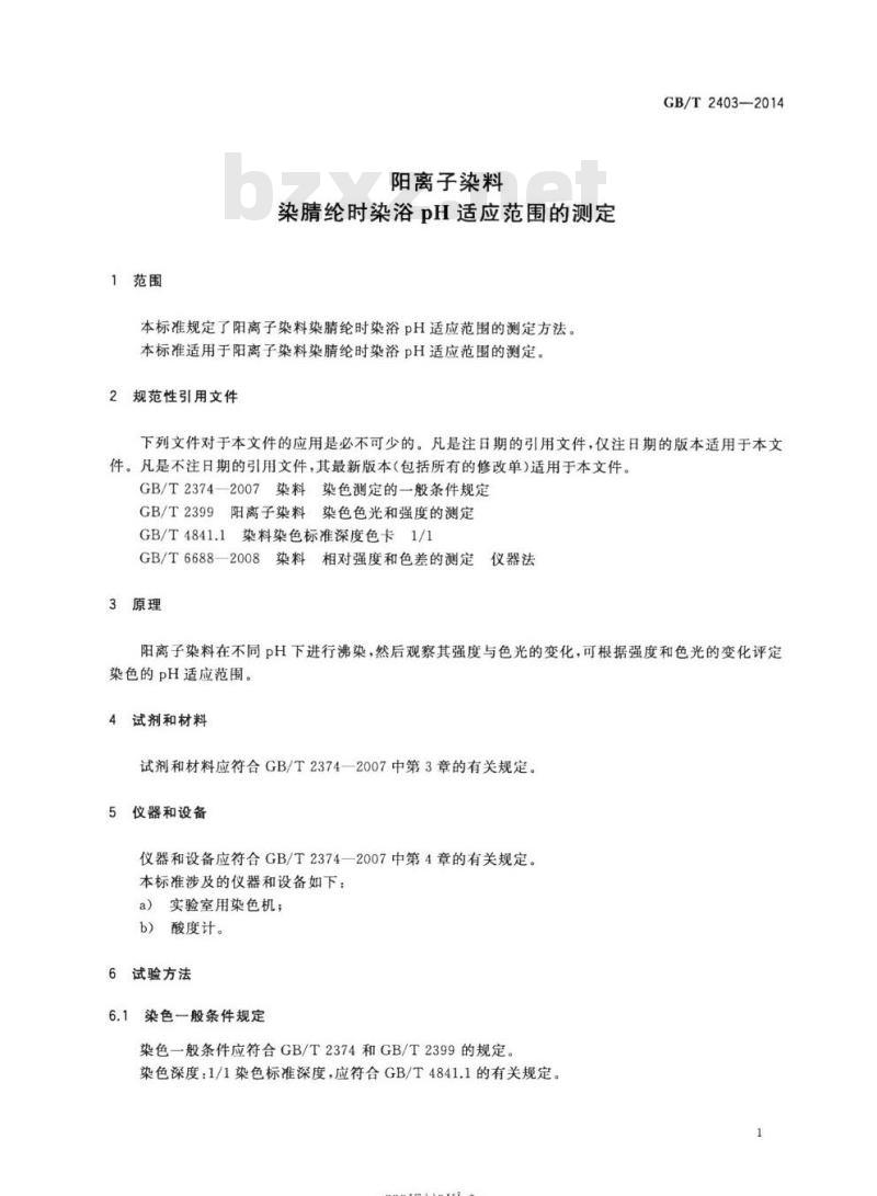 - GB/T 2403-2014 阳离子染料染腈纶时染浴pH适应范围的测定
