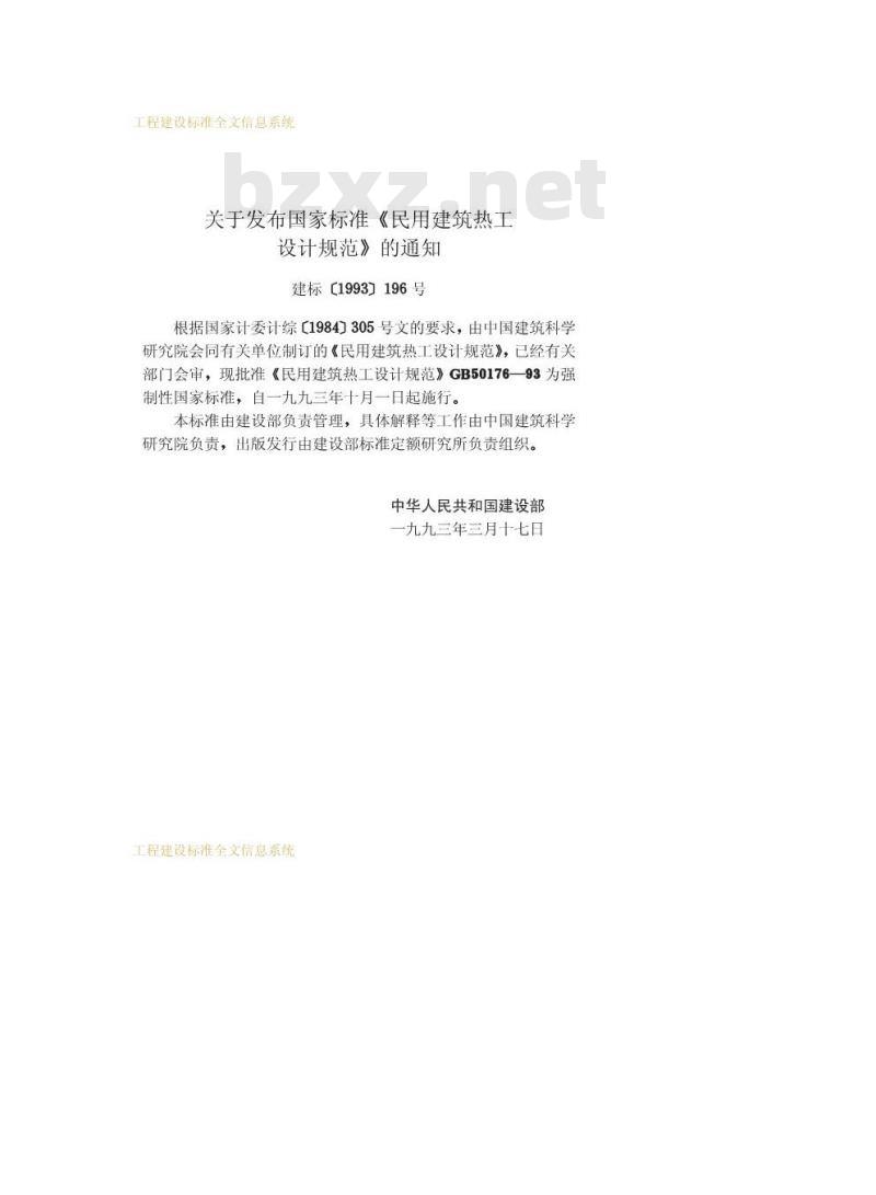 根据国家计委计综[1984305号文的要求,由中国建筑科学研究院会同有关单位制订的《民用建筑热工设计规范》,已经有关部门会审,现批准《民用建筑热工设计规范》GB50176—93为强制性国家标准,自一九九三年十月一日起施行。本标准由建设部负责管理,具体解释等工作由中国建筑科学研究院负责,出版发行由建设部标准定额研究所负责组织。中华人民共和国建设部