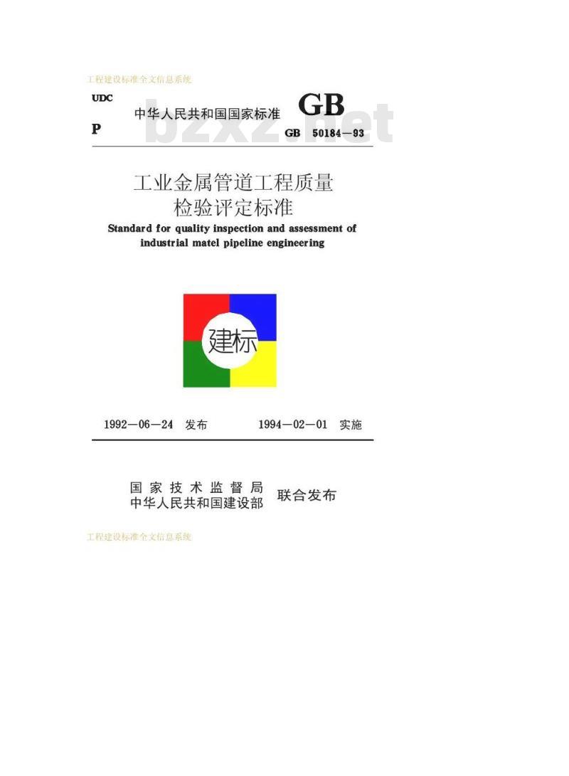 - GB 50184-1993 工业金属管道工程质量检验评定标准