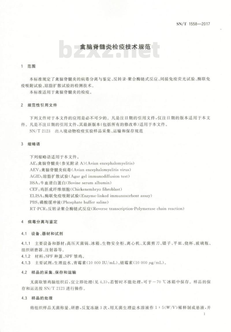 - SN/T 1558-2017 禽脑脊髓炎检疫技术规范