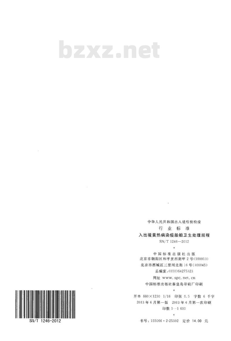 - SN/T 1246-2012 入出境黄热病染疫船舶卫生处理规程