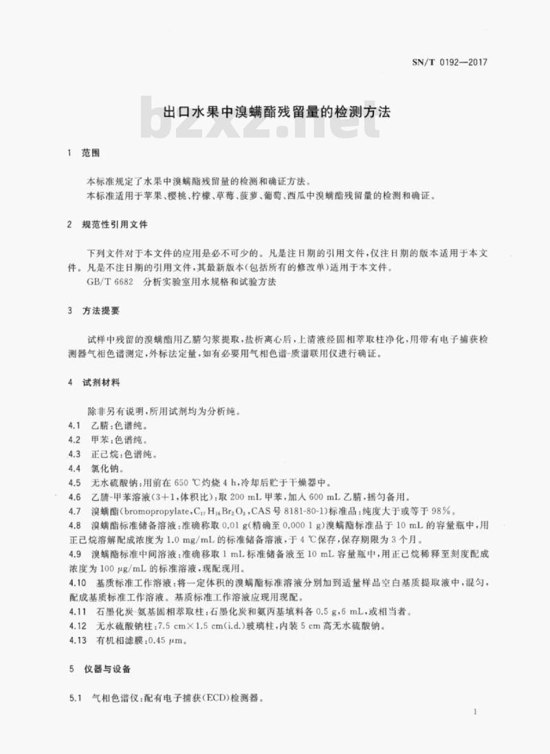 - SN/T 0192-2017 出口水果中溴螨酯残留量的检测方法