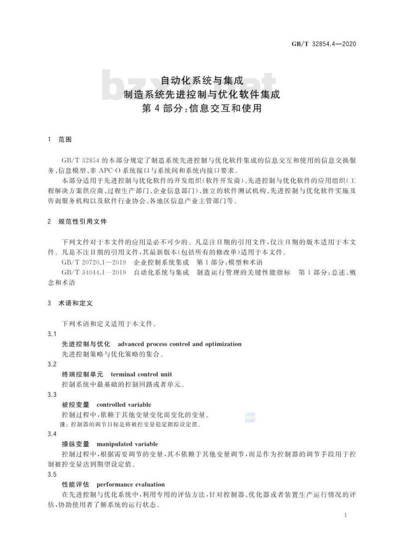 - GB/T 32854.4-2020 自动化系统与集成制造系统先进控制与优化软件集成第4部分:信息交互和使用