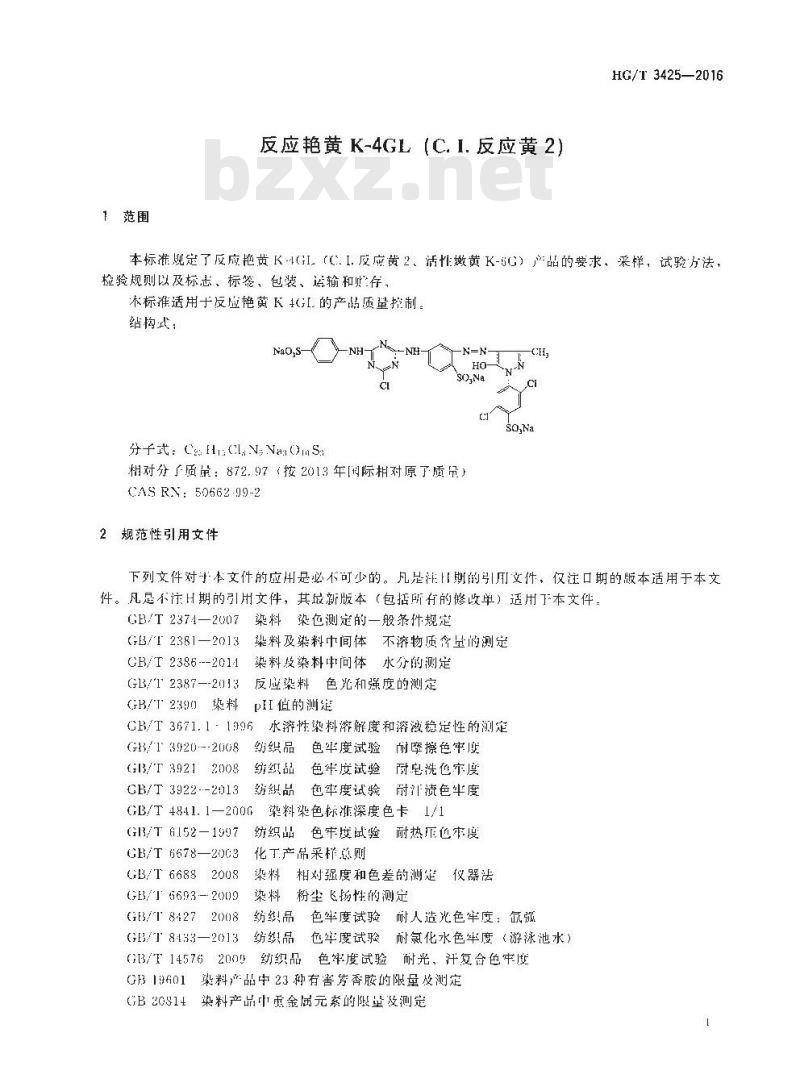 HG/T 3425-2016.Reactive brilliant yellow K-4CL (C. I. Reactive yellow 2).