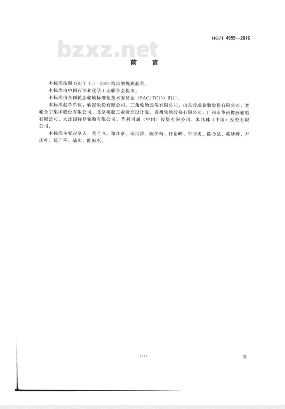 本标准按照GB/T1.1-2009给出的规则起草本标准由中国石油和化学工业联合会提出。本标准由全国轮胎轮辋标准化技术委员会(SAC/TC19)归口。HG/T4955—2016