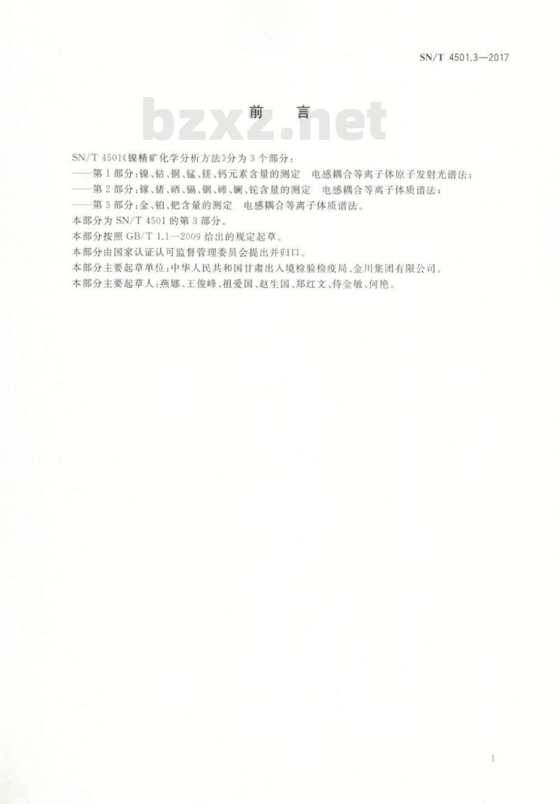 SN/T 4501.3规定了镍精矿中金、铂、钯的电感耦合等离子体质谱测定方法。