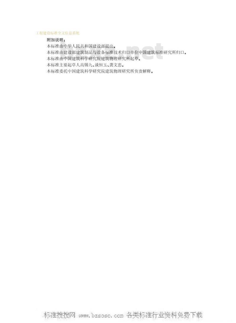 本标准由中华人民共和国建设部提出。本标准由建设部建筑制品与设备标准技术归口单位中国建筑标准研究所归口。本标准由中国建筑科学研究院建筑物理研究所起草。本标准主要起草人高锡九、谈恒玉、龚文忠。本标准委托中国建筑科学研究院建筑物理研究所负责解释。