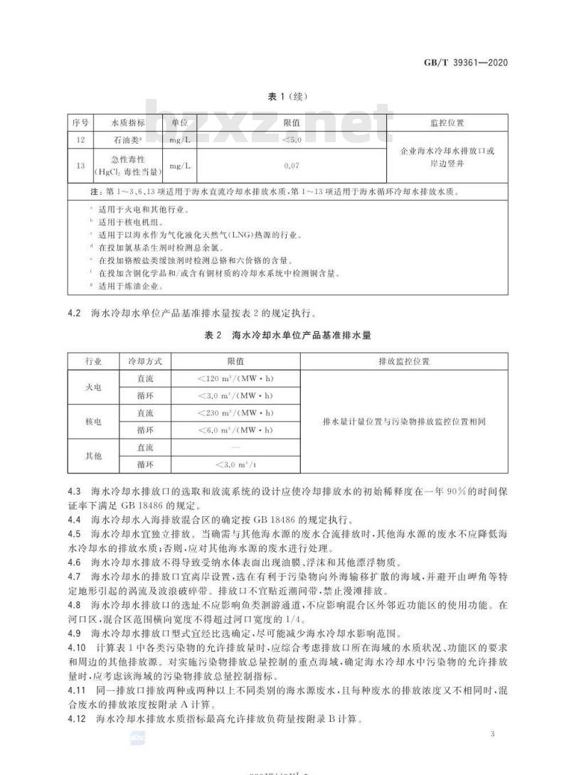GB/T 39361规定了海水冷却水排放的控制要求、监测要求和结果判定方法。