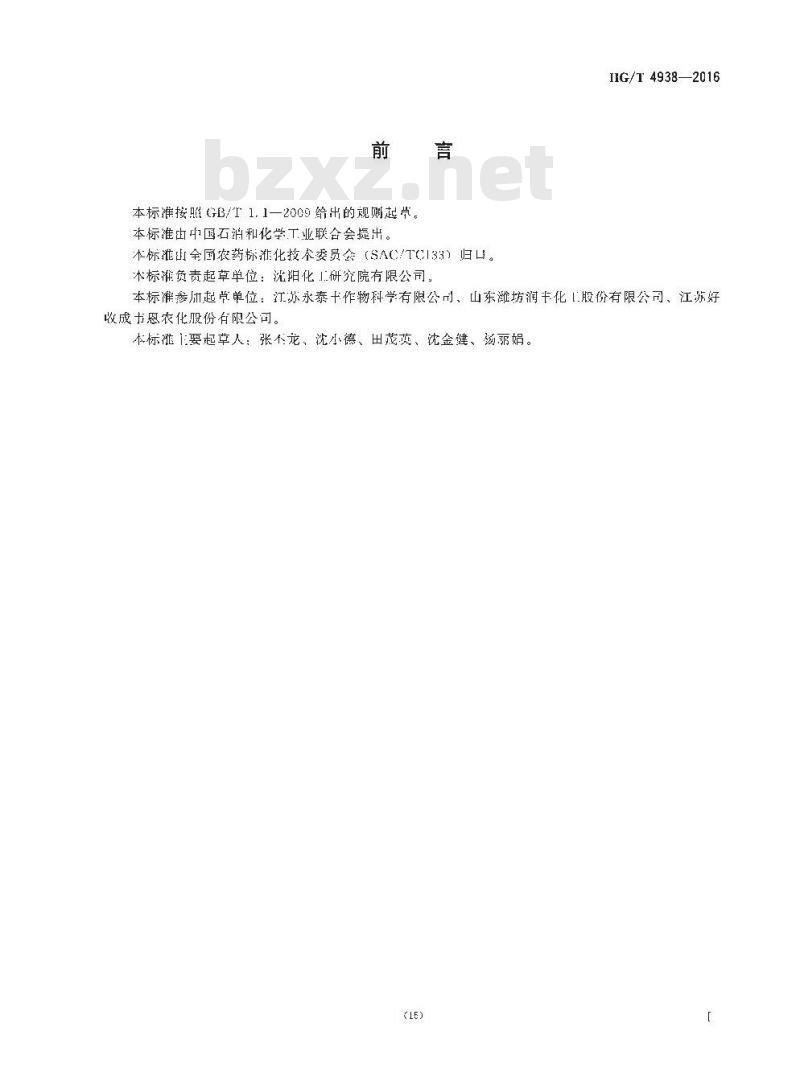 本标准按照GB/1.1一2009给出的规则起。本标准由中国石和化学工业联合会凝出。本标准全国农药标雅化技术委员会(SA/TCI33)归口。本标雄负责起草单位:沈化1研究院有限公司I1G/T4938—2016