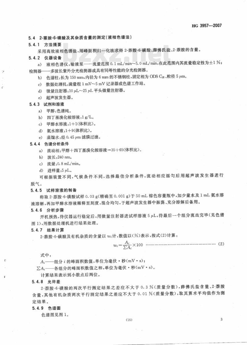 5.42-萘胺-6-磺酸及其杂质含量的测定(液相色谱法)HG3957——2007
