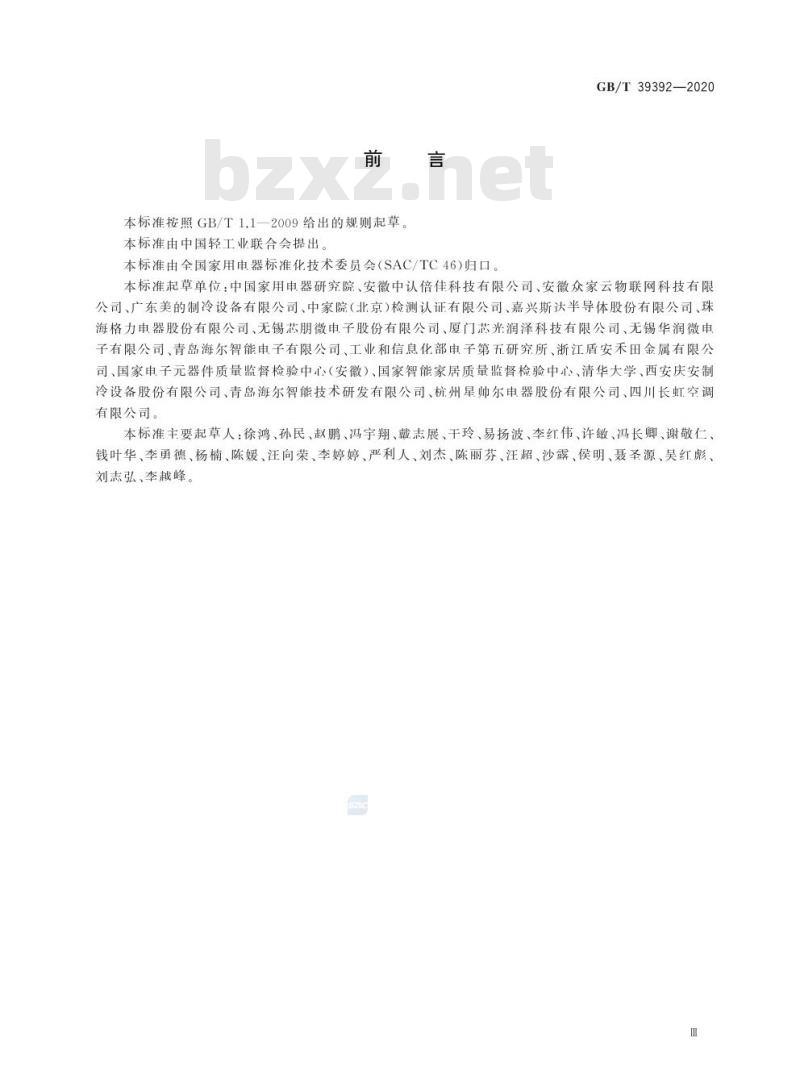 本标准按照GB/T1.1一2009给出的规则起草本标准由中国轻工业联合会提出。本标准由全国家用电器标准化技术委员会(SAC/TC46)归口。GB/T39392—2020