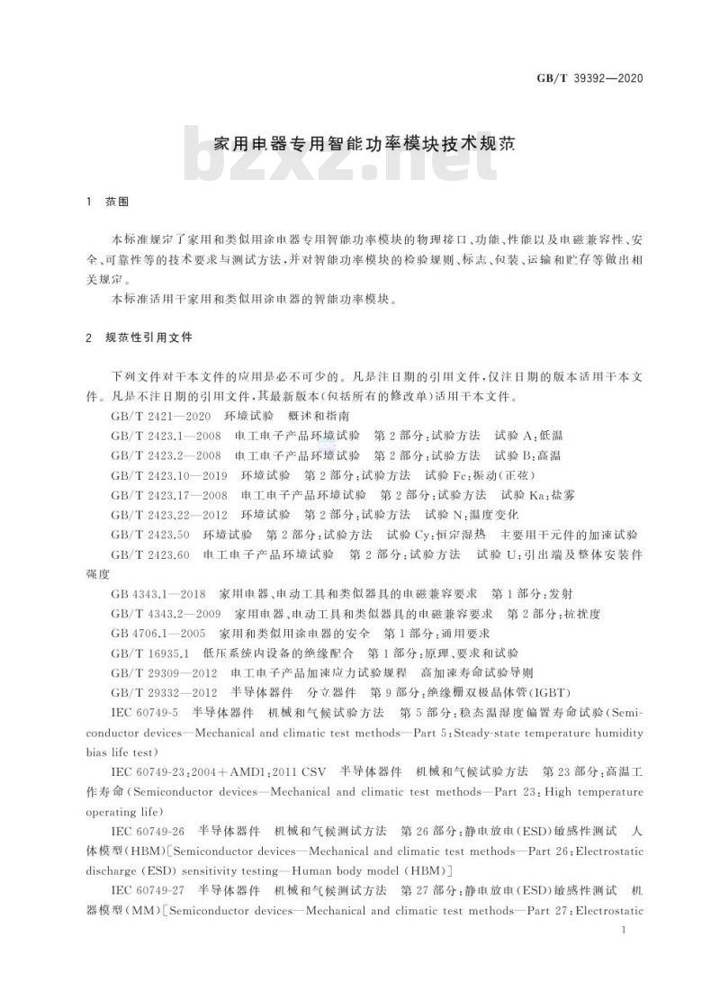 - GB/T 39392-2020 家用电器专用智能功率模块技术规范