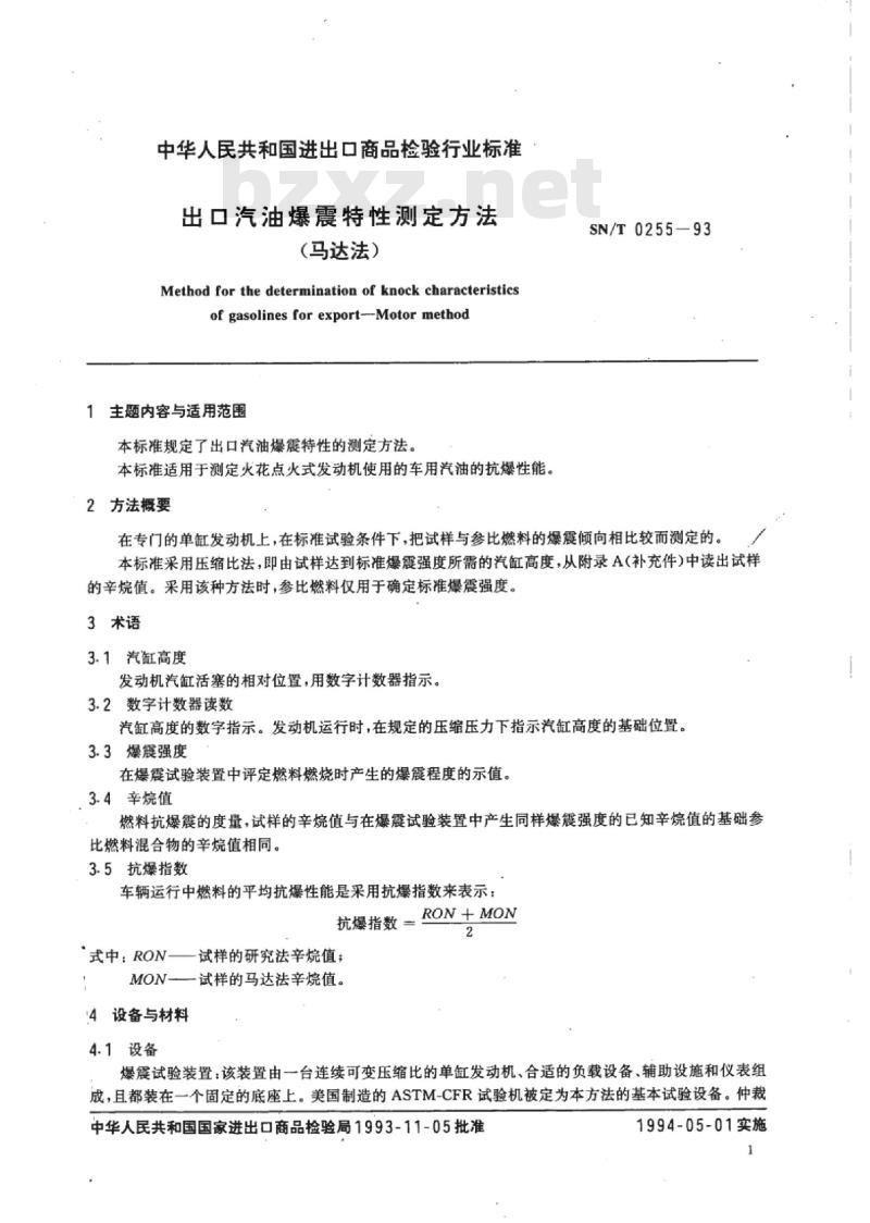 - SN/T 0255-93 出口汽油爆震特性测定方法(马达法)