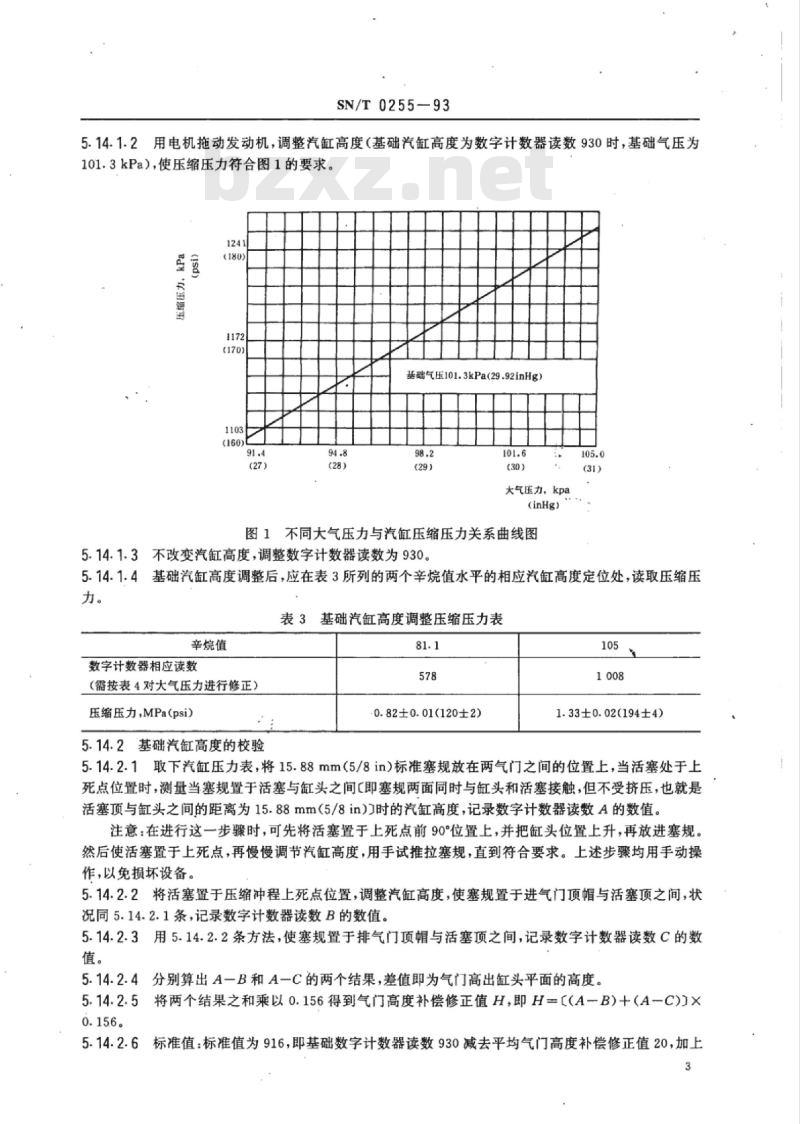 5.14.1.4基础汽缸高度调整后,应在表3所列的两个辛烷值水平的相应汽缸高度定位处,读取压缩压力。