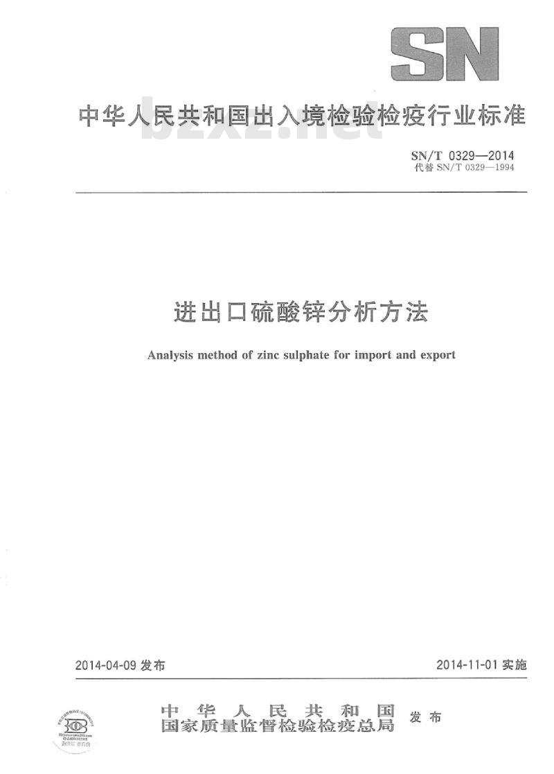 - SN/T 0329-2014 进出口硫酸锌分析方法
