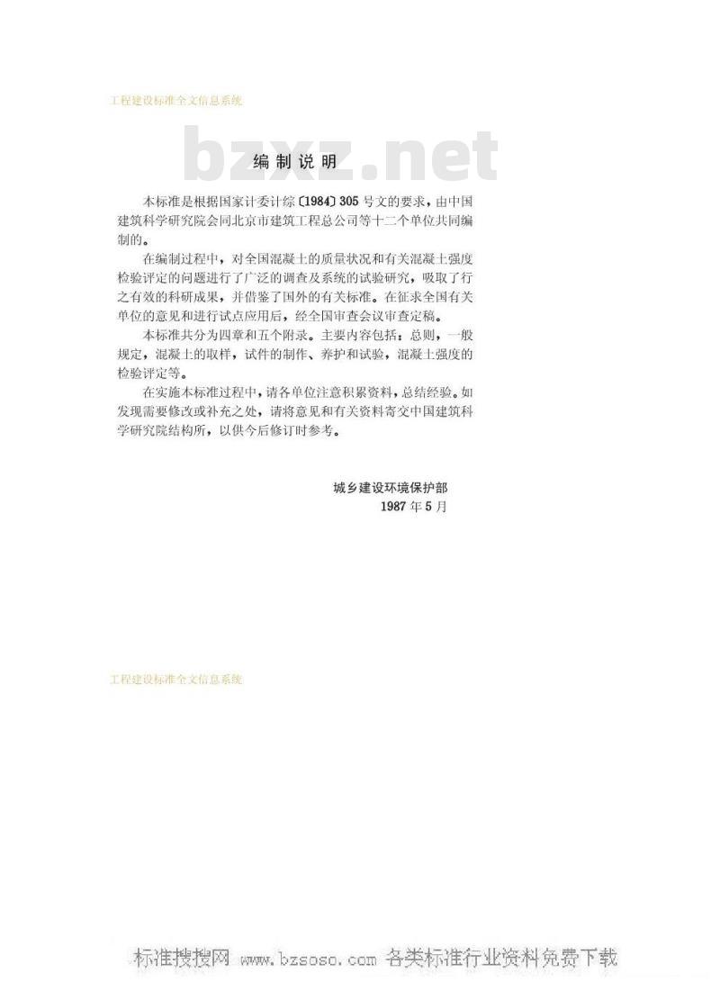 在编制过程中,对全国混凝土的质量状况和有关混凝土强度检验评定的问题进行了广泛的调查及系统的试验研究,吸取了行之有效的科研成果,并借鉴了国外的有关标准。在征求全国有关单位的意见和进行试点应用后,经全国审查会议审查定稿。本标准共分为四章和五个附录。主要内容包括:总则,一般规定,混凝土的取样,试件的制作、养护和试验,混凝土强度的检验评定等。