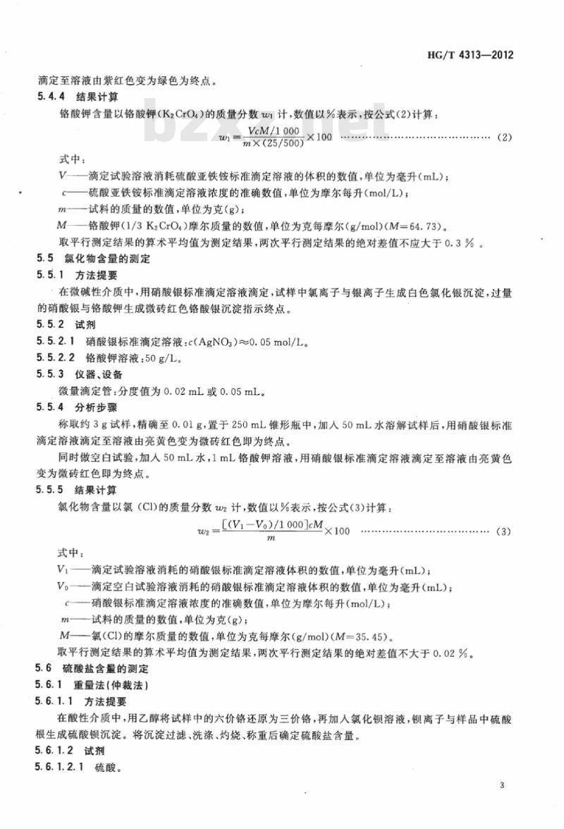 建筑321---标准查询下载网jz321.net至刻度,摇勾。此溶液使用前配制。5.6.2.2.4重铬酸钾溶液:7.5g/L;HG/T4313—2012