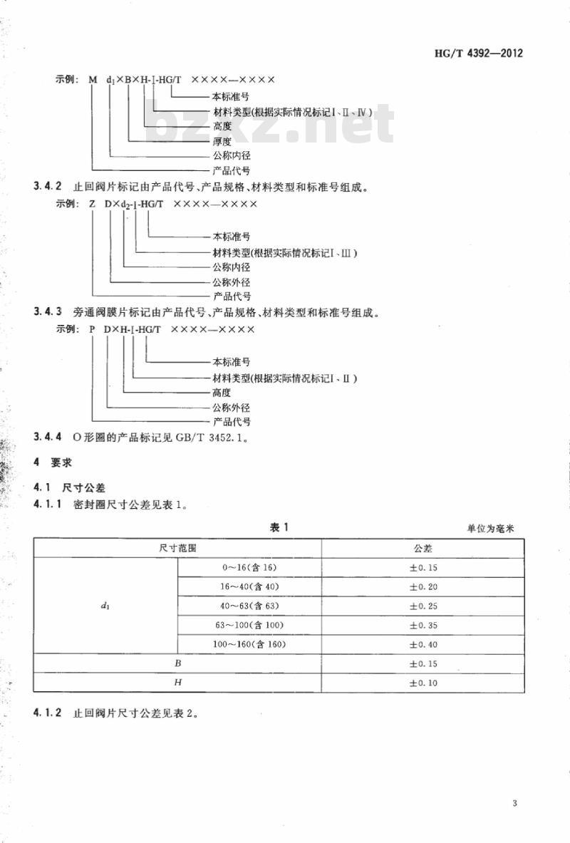 3.4.2止回阀片标记由产品代号、产品规格、材料类型和标准号组成。示例: